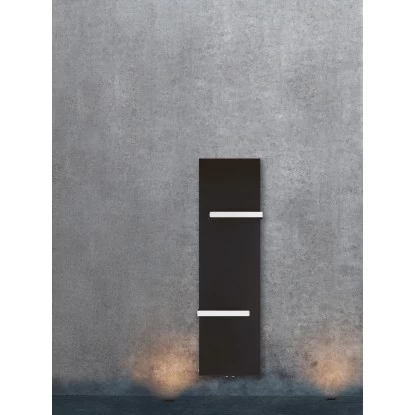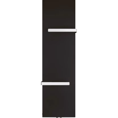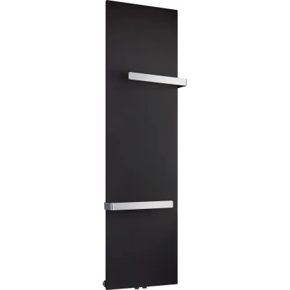 Für eine moderne Raumgestaltung sorgt der flache Badheizkörper Kerpen. Er schafft eine angenehme Wärme in Ihrem Badezimmer und trocknet gleichzeitig Ihre Handtücher. Zu diesem Zweck ist der Flächenheizkörper mit integrierten Handtuchhaltern ausgestattet. Der Handtuchwärmer ist in mattem Schwarz gehalten, wodurch er dem Trend aktueller Badeinrichtungen entspricht. Dabei schafft seine geschlossene Bauweise eine gleichmäßige Wärmeverteilung. Seine Nennwärmeleistung beträgt 540 W, wodurch sich der Heizkörper durch energiesparende Eigenschaften auszeichnet. Dank seiner glatten und kratzfesten Beschichtung stellt er Ihnen eine pflegeleichte Oberfläche zur Verfügung.