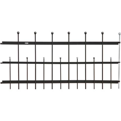 Vielseitig einsetzbar als Teichschutzzaun, Gartenabgrenzung, Terrassenbegrenzung, Tiergehege, Baumschutzzaun, Staudenstützgitter, u. v. m. Aufbau: Jedes Element hat 4 Fixierstäbe mit Kugel (+ 1 Verbindungspfosten/ -stab), die durch die kurzen Rohre eingedrückt oder eingeschlagen werden und so den Zaun in seiner vorgegebenen Form halten und als Verankerung dienen.