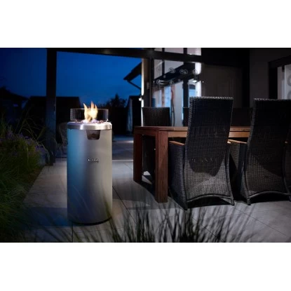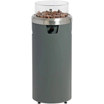 Durch die klare Linienführung des Buschbeck Terassenheizer Loungefeuer Faro Grau 7,5 kW wird das zauberhafte Flammenspiel optimal zur Geltung gebracht. Als Windschutz dient der runde Glasaufsatz, der aus Sicherheitsglas gefertigt ist. Betrieben wird das Loungefeuer mit Propan- oder Butan-Gas und ist geeignet für Flaschen mit 11 kg. Dank dem mitgelieferten Anschlussschlauch und Druckminderer können Sie diese ganz bequem anschließen und auch während des Betriebs im Korpus verstauen. Der elektronische Piezoanzünder lässt einfach auf Knopfdruck das Feuer erscheinen und schon können Sie die tanzenden Flammen bewundern. Aber nicht nur optisch beeindruckt das Buschbeck Loungefeuer, gleichzeitig sorgt dieses auch für eine angenehme Wärme an kühleren Tagen. So steht behaglichen Stunden im Garten oder auf der Terrasse Nichts mehr im Wege.