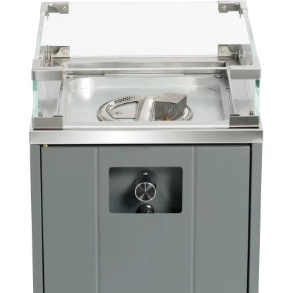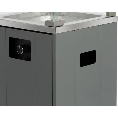 Über die geradlinige und moderne Form Buschbeck Terassenheizer Loungefeuer Malta Grau 7,5 kW ziehen die tanzenden Flammen die Blicke auf sich und sorgen für eine entspannte Atmosphäre. Entfacht wird das Feuer über eine Piezozündung und betrieben mit einer 11 kg Propan- oder Butangefüllten Gasflasche, die ganz praktisch in dem Innenraum verstaut werden kann. Ein mehrstufiger Regler kontrolliert die Zufuhr des Gases. Als Windschutz dienen die vier Glasscheiben aus Sicherheitsglas, die das Flammenspiel gekonnt in Szene setzen. Die im Lieferumfang enthaltenen Lavasteine wirken dekorativ und verfügen über eine gute Wärmespeicherung.