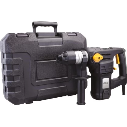 Das Gerät wird mit einem Zusatzhandgriff geliefert, mit dem Sie es immer fest im Griff haben und es auch bei kraftaufwändigen Anwendungsfällen sicher führen können. Der mitgelieferte Koffer bietet Ihnen eine sichere und platzsparende Aufbewahrungsmöglichkeit für den Bohrhammer inkl. Zubehör.