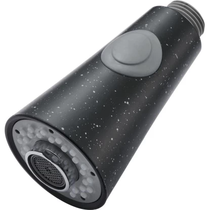 Mit der Ersatz-Geschirrbrause erneuern Sie einen defekten oder verbrauchten Brauseaufsatz an Ihrer baliv Küchenarmatur KI-1300. Kompatibel ist die Brause mit allen Küchenarmaturen, die über einen Standardanschluss für den Auslauf verfügen. Sie ist aus robustem und langlebigem Kunststoff gefertigt. Für eine unkomplizierte Pflege verfügt die Oberfläche über eine hochwertige Beschichtung in Matt-Schwarz. Diese erweist sich als wasserresistent und unempfindlich. Zugleich besticht sie durch ihre moderne Optik. Verwenden können Sie den Aufsatz mit allen Armaturen und ausziehbaren Schläuchen, die einen Anschluss in der Größe 21 mm (G 1/2) aufweisen. Durch das integrierte Außengewinde ist eine werkzeugfreie Montage möglich. In der Gehäuseseite befindet sich eine Umschalttaste, mit welcher Sie je nach Bedarf zwischen einem klassischen Sprühstrahl und der Brausefunktion wechseln können. Dank der bereits eingebauten Mischdüse erhalten Sie einen feinen und gebündelten Wasserstrahl.