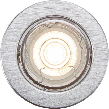 Für eine optimale Montage benötigt der LED-Spot eine Bohrung von Ø 68 mm. Das Außenmaß des Rahmes beläuft sich auf insgesamt Ø 86 mm. Die vorgesehene Einbautiefe beträgt 60 mm. In den Leuchtkörper ist eine austauschbare LED-Lampe des Typs GU10 integriert, die eine Leistungsaufnahme von 3,5 W besitzt. Dies ergibt ein warmweißes Licht bei 2.900 K und einen Lichtstrom von 330 lm. Die einfache Montage nehmen Sie durch einen bündigen Einbau vor, sodass nur der Leuchtenrahmen zu sehen ist. Der Lieferumfang beinhaltet ein 3er-Set inklusive der Leuchtmittel.