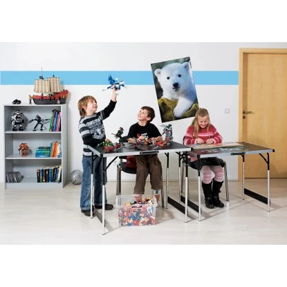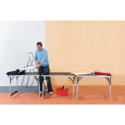 Ob zum Tapezieren, für einen Flohmarkt oder fürs Buffet, mit dem schwarzen 3-teiligen LUX-TOOLS Multifunktionstisch sind Sie für jede Gelegenheit ausgerüstet. Das stabile und gleichzeitig leichte Aluminium-Stahl-Gestell ist 4-fach höhenverstellbar, beginnend bei 73 cm, 80 cm, 87 cm und 94 cm. Außerdem läßt er sich nach Belieben zusammenstellen. Das Set besteht aus einzelnen, gleich großen Tischen, die mit Hilfe der fest angebrachten Klammern schnell und einfach am mittleren Tisch befestigt werden können. Sie können die einzelnen Tische beliebig aneinander stellen und erreichen so eine Gesamtlänge von 3 m und eine komfortable Nutzfläche von 60 cm. Nach dem Einsatz verstauen Sie den Tisch einfach schnell und platzsparend.