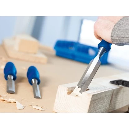 Der LUX-TOOLS Stechbeitel Classic ist ein Werkzeug, das in der Holzbearbeitung wie Schnitzarbeiten zum Einsatz kommt. Es eignet sich für feinere Arbeiten und ermöglicht ein sauberes Ausstechen von spitz zulaufenden Ecken. Das Stecheisen besitzt eine schräge Klinge aus Carbonstahl mit einer Breite von 20 mm. Die Sohlenlänge beträgt ebenfalls 20 mm. Es ist mit einem ergonomisch geformten Griff aus Kunststoff ausgestattet, der über rutschfeste Eigenschaften verfügt.