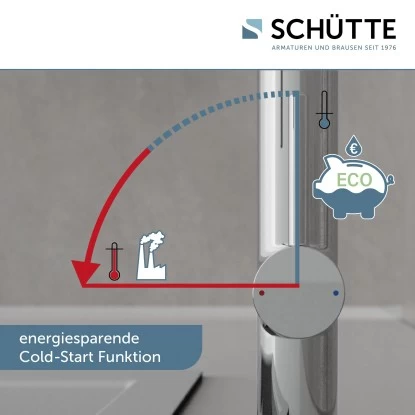 Stilo Spültischarmatur mit Soft-Touch Schlauch Chrom-Schwarz. Die exklusive Küchenarmatur wird mit einem austauschbarem, farbigen Soft-Touch Schlauch geliefert – für einen modernen Blickfang in der Küche und für alle, die Abwechslung schätzen. Ressourcenschonend handeln auch im Kleinen? Dann ist diese Einhebel-Mischbatterie mit Cold-Start Technik genau richtig, denn sie gewährt bei senkrechter Position des Bedienhebels nur den Zufluss von Kaltwasser. Bei vielen Waschgängen völlig ausreichend.