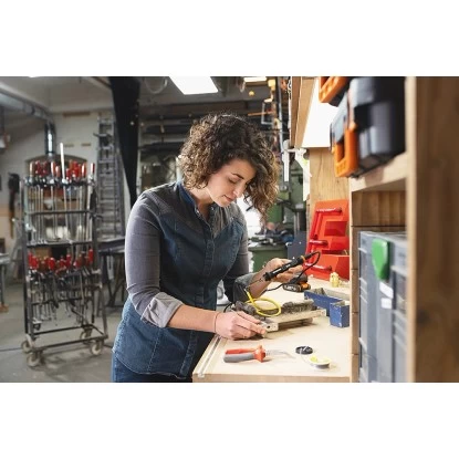 Das Worx MakerX Doppel-Set besteht aus zwei Mini-Tools für kreatives Arbeiten wie Basteln, Modedesign, Reparaturen, der Restaurierung und Holzbearbeitung. Das Akku-Multifunktionswerkzeug ist zum Schleifen, Bohren, Polieren und Gravieren geeignet, während der Lötkolben für Brandmalerei und beim Löten zum Einsatz kommt.